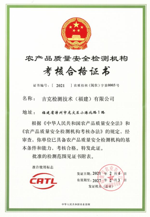 吉克檢測技術(福建)有限公司,位于福建省漳州市龍文區小港北路1號,于2019年8月注冊成立,是一家獨立的第三方檢測公司。公司已經通過檢驗檢測機構計量認證(CMA)、農產品質量安全檢測機構資質認證(CATL),獲得中國合格評定國家認可委員會(CNAS)認可。公司本著“嚴謹、規范、高效、協作”的原則和對客戶及社會高度負責的精神,充分利用本公司優質的檢測環境、先進的檢測設備和專業的技術人員,第一時間為客戶提供科學、公正、準確的檢驗檢測報告。       公司實驗室面積1100多平方米,儀器設備兩百多臺(套),固定資產一千多萬元,在職員工31人,技術人員中的中高級職稱及同等能力人數占60%以上。我們的服...